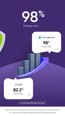 - 98% pass rate confidence: Among the Archer Q-bank users who took the exam after completing all the sure-pass criteria and achieving consecutive highs on four assessments, the pass rate has been 98%.