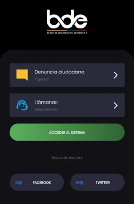 El Banco de Desarrollo del Ecuador B.P. (BDE) es una institución financiera de la Banca Pública de Desarrollo, líder en el financiamiento de proyectos de preinversión, infraestructura, provisión de servicios públicos, obras de interés social y asesoramiento que promuevan el progreso de las economías locales. Es parte, además, del Gabinete Sectorial Económico y Productivo.
