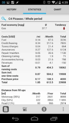 Car Costs Complete provides everything you need for vehicle management: fuel consumption and fuel costs as well as all other car costs