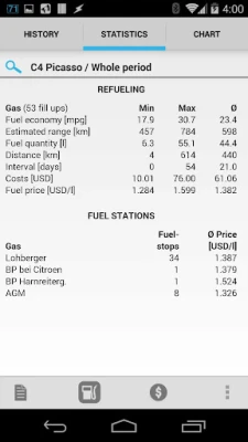 ✔ Easy and flexible recording of refilling, expenses, revenues, repairs and notes