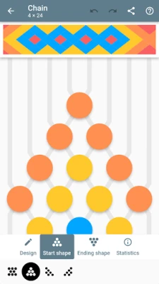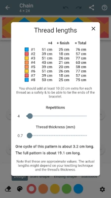 You don't need to think about knot types, threads and directions - just color the knots, and the application does the magic, it generates the pattern for you.