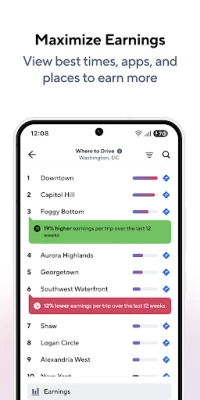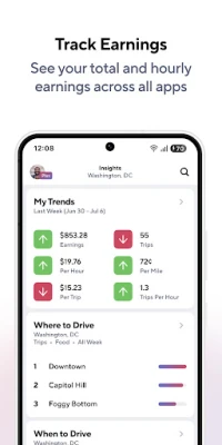 Get valuable insights to find where and when to work to maximize your hourly or per-mile rate. Organize all your earnings in one place so you can compare them to other drivers in your area, monitor which services are most profitable, and find opportunities to earn more efficiently.