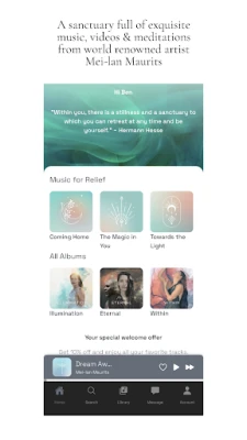 The intention of this Music Sanctuary is to help you reach a higher level of consciousness to live a happier, more authentic life and embody your soul purpose. You'll have an Immediate connection to all of Mei-lan’s creations, access to new songs and meditations, over 3,000 minutes of music, receive early access to all new launches and music, explore playlists of music you’ve never heard before, and specially curated playlists to balance every part of your being.